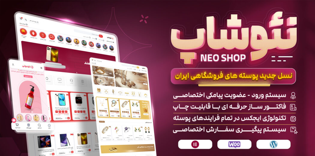 قالب نئوشاپ نتیجه ماه‌ها طراحی، کدنویسی و آزمون است. قالبی فروشگاهی که با نگاهی دقیق به نیاز کاربران ایرانی، از پایه طراحی و پیاده‌سازی شده است، سبد خرید اختصاصی ووکامرس، سیستم صدور فاکتور اختصاصی، سیستم ورود و عضویت پیامکی اختصاصی، پنل کاربری اختصاصی + لیست سفارشات مشابه دیجی کالا، سیستم پیگیری سفارش اختصاصی، صفحه اختصاصی ورود ادمین بخشی ازویژگی‌های این قالب فروشگاهی هستند.